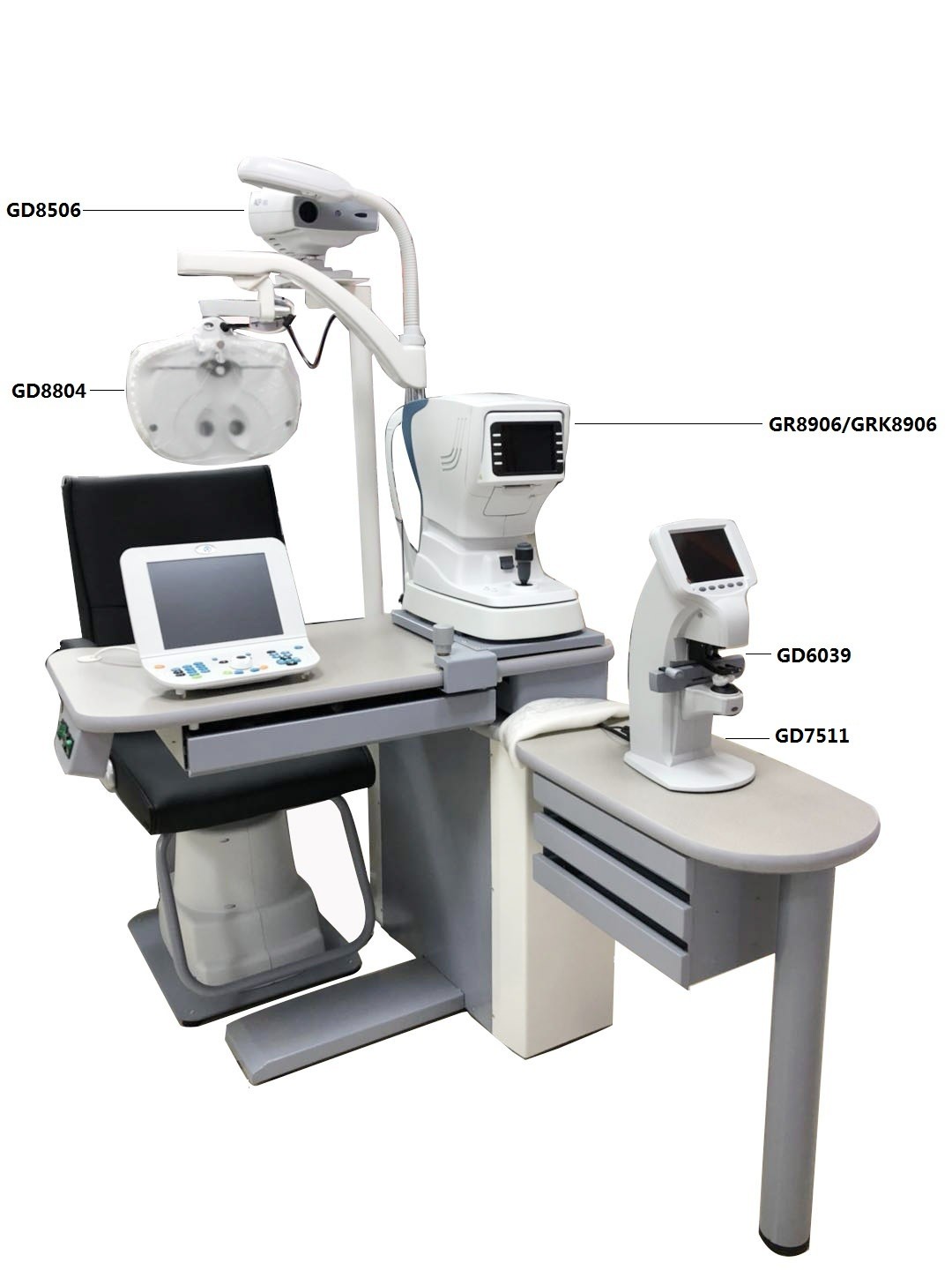 1. 안과 유닛 -GD7511: 검안기 암은 위아래로 움직이고 회전하여 조절 가능합니다. 렌즈미터 배치를 위한 추가 테이블;